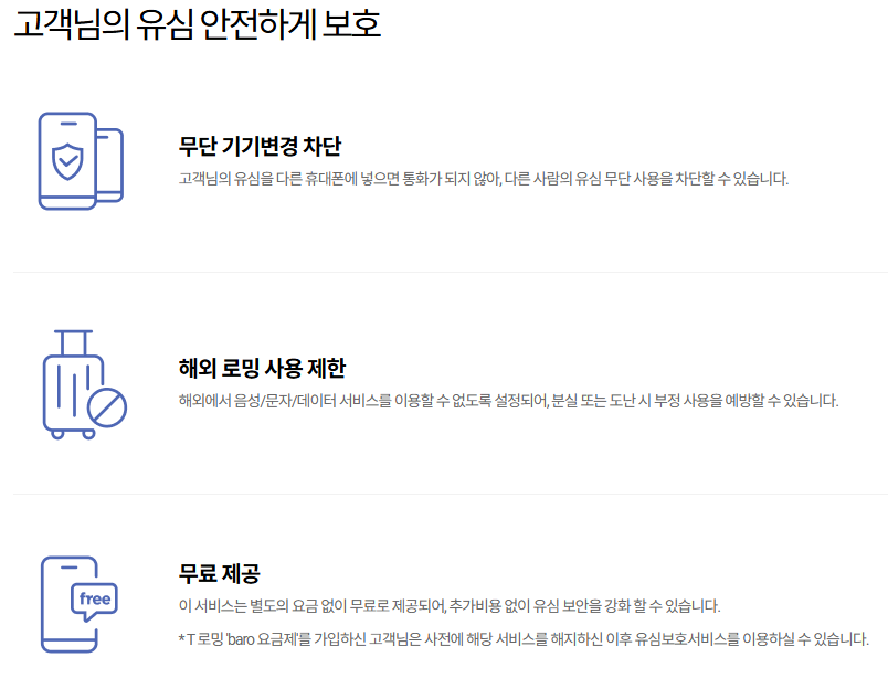 - SKT 공식 홈페이지 → 고객센터 → 유심보호서비스 신청